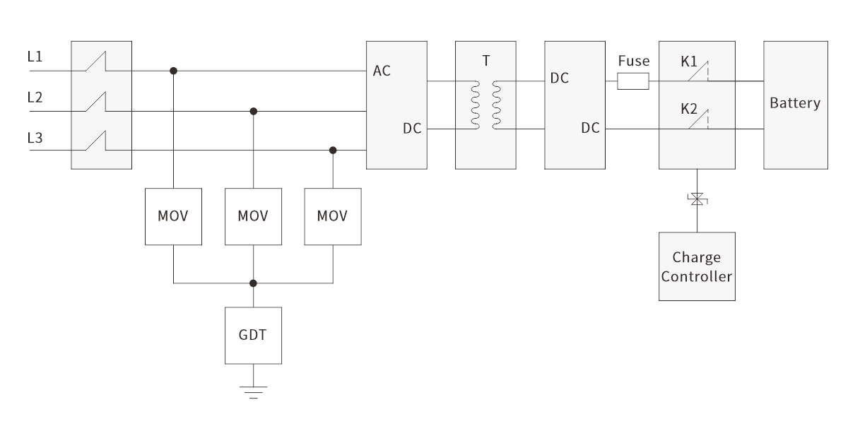 EV on-board chargers (OBCs) are directly connected to the AC grid (AC 220V/380V) and the vehicle's high-voltage DC battery (DC 400V/800V) during operation. They are vulnerable to lightning surges, switching surges, and electrostatic discharge. MOVs and GDTs are required to eliminate electromagnetic interference and spike voltages from the grid.