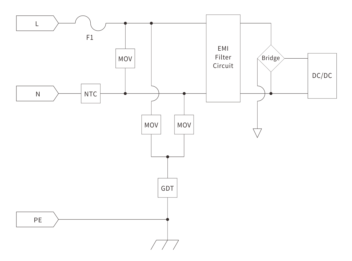 AC 36V power supplies are low-voltage AC power, primarily used in scenarios with high electrical safety requirements or moderate power demands. Typical applications include low-voltage control equipment such as PLCs (Programmable Logic Controllers), sensors, and relays. Although AC 36V power ports are low-voltage systems, the connected equipment is often high-precision, high-safety control or medical equipment, which is extremely sensitive to surges. Lightning, operational overvoltages, system fault currents (such as short circuits), and ESD (Electrostatic Discharge) can cause instantaneous high-voltage surges of several thousand volts, leading to equipment short circuits and damage, or even more serious safety accidents such as fires. Through graded protection and appropriate selection, surge protection schemes for AC 36V power supplies can effectively resist instantaneous overvoltages, significantly improving system reliability.